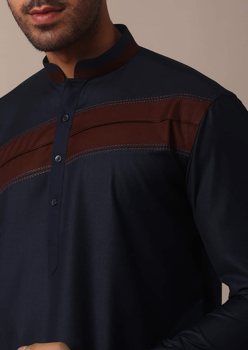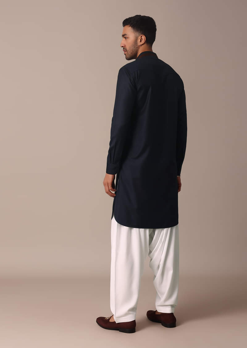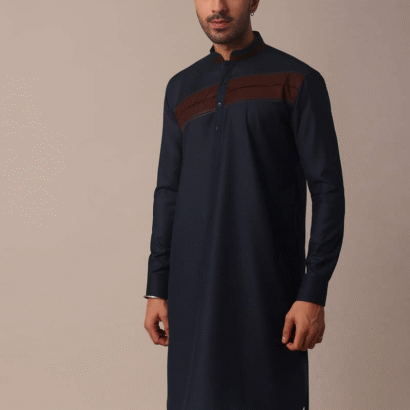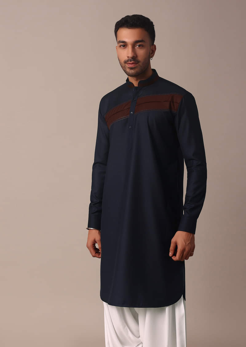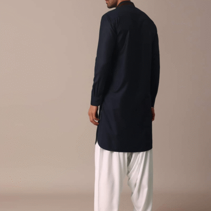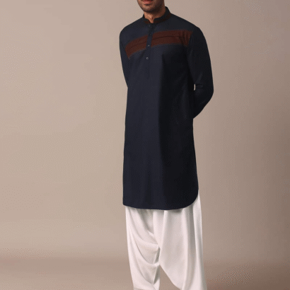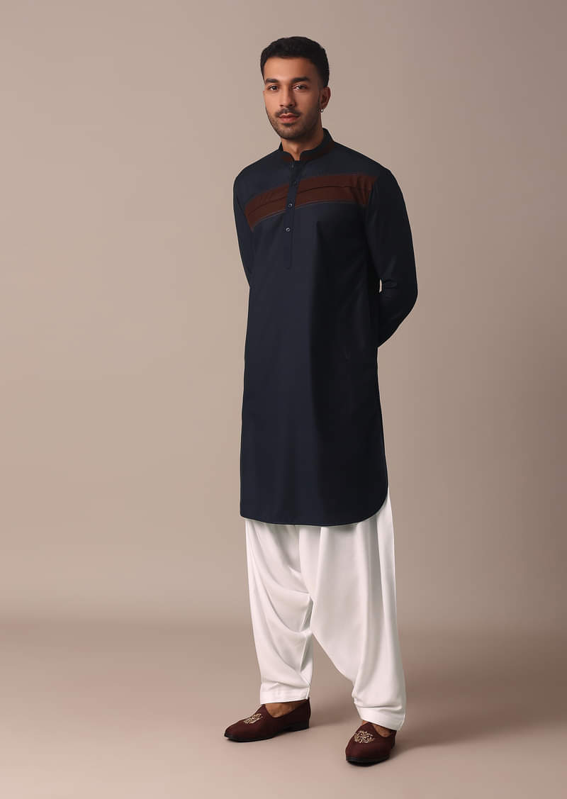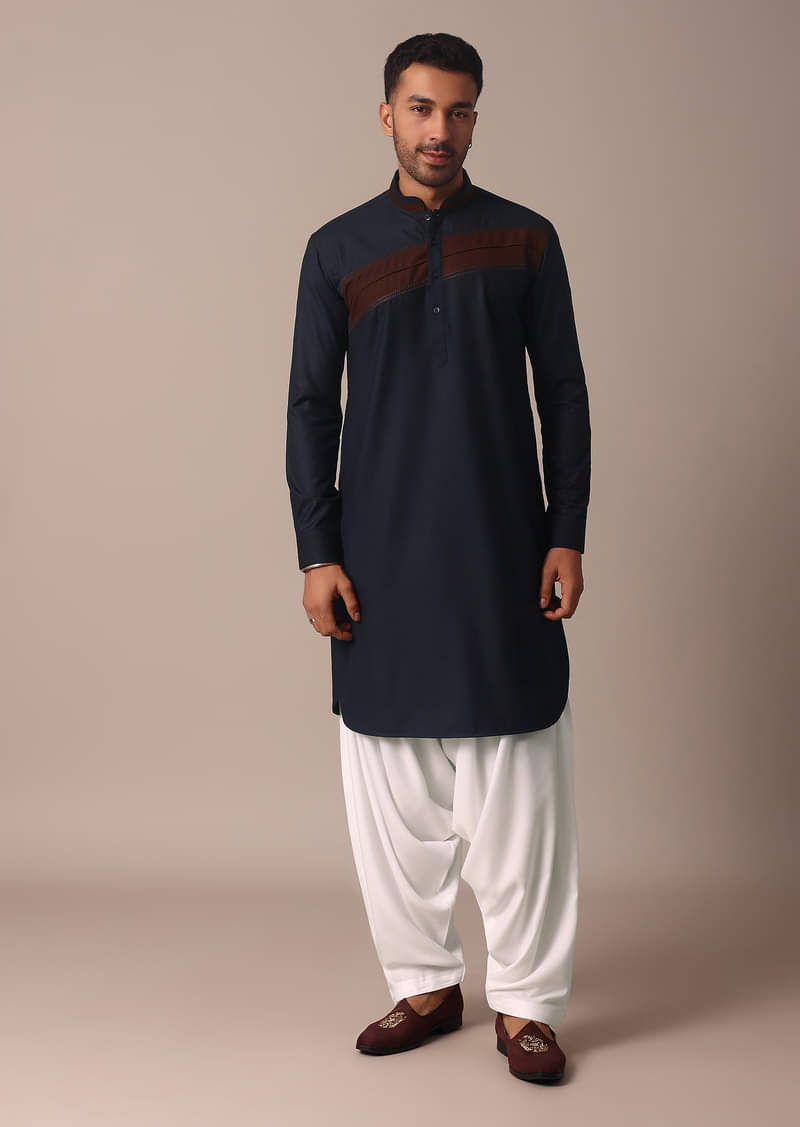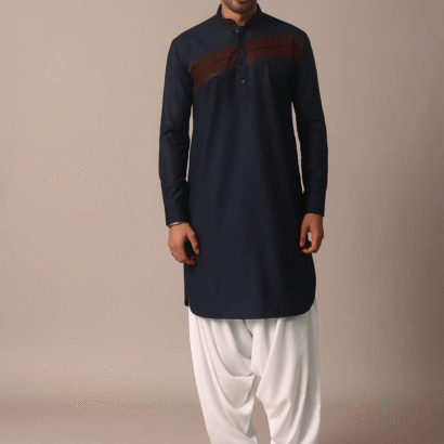 Stylish blue and white contrasted shalwar kameez for a bold, modern look.